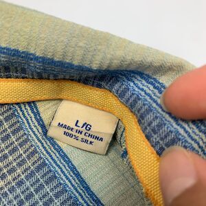 Tommy Bahama Shirt Mens L Large Blue Silk Striped Original Fit Pocket Hawaiian