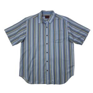 Tommy Bahama Shirt Mens L Large Blue Silk Striped Short Sleeve Hawaiian Camp