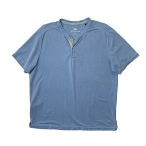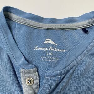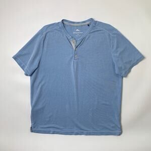 TOMMY BAHAMA SHIRT MENS L LARGE DELFT BLUE HENLEY LIGHTWEIGHT LYOCELL BLEND