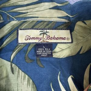Up for sale is a used - Tommy Bahama Shirt Men's Large Blue Floral Hawaiian 100% Silk Palm Tree Button Up