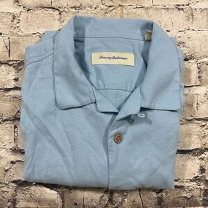 Tommy Bahama Shirt Men's Large Blue Hawaiian Paisley Silk Button Up Vacation