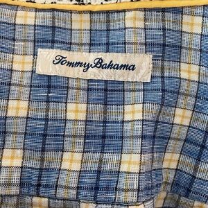 Tommy Bahama Shirt Mens Large Blue Plaid Linen Blend Long Sleeve Logo