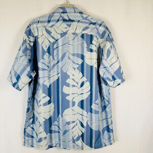 Tommy Bahama Shirt Mens Large Blue White Silk Floral Hawaiian Button-Up Casual