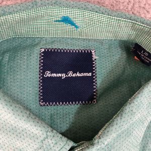Tommy Bahama Shirt Mens Large Green Teal Button Up Pocket Collar Preppy Outdoor