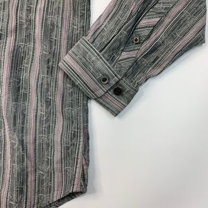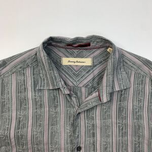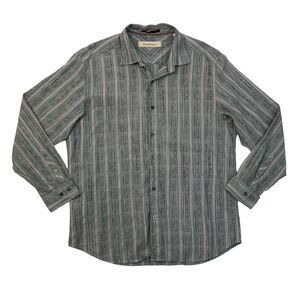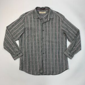 Tommy Bahama Shirt Mens Large Grey Burgundy Silk Cotton Blend Stripe Long Sleeve