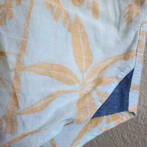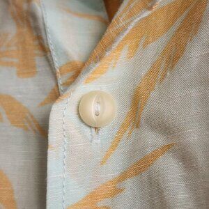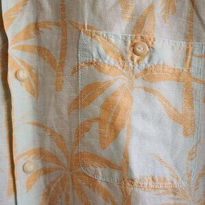Tommy Bahama Shirt Mens Large Blue Tan Palm Hawaiian Button Up Linen TENCEL Blend