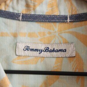 Tommy Bahama Shirt Mens Large Hawaiian Button Up Linen TENCEL Blend Palm Print