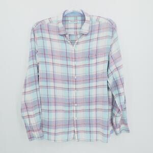 Tommy Bahama Shirt Mens Large Multi Plaid Linen Beach Resort Vacation Coastal