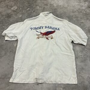 Tommy Bahama Shirt Mens Large Silk Embroidered Logo Maduro Paradise Parrot Cigar