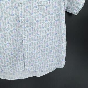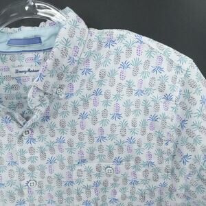 Tommy Bahama Shirt Mens Large White Purple Pineapple Print Short Sleeve Resort