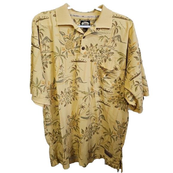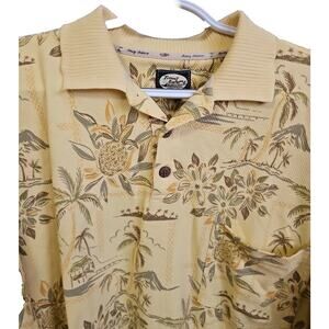 Tommy Bahama Shirt Mens Large Yellow Hawaiian Print Short Sleeve Polo