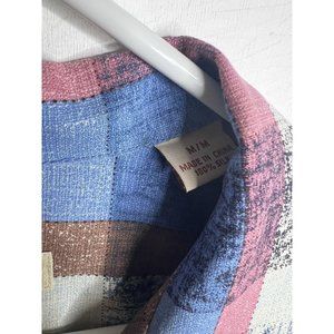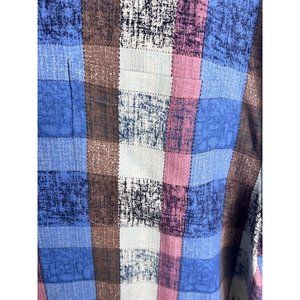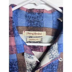 Tommy Bahama Shirt Mens M Blue 100% Silk Plaid Stripes Button Up Short Sleeve