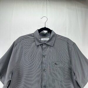 Tommy Bahama Shirt Mens M Coconut Point Micro Check IslandZone Button Up Gray