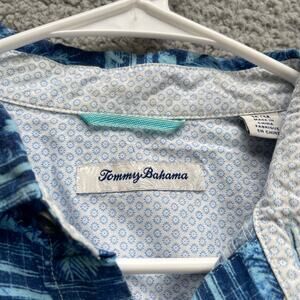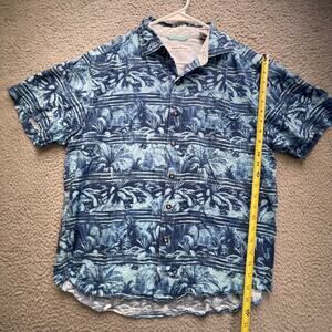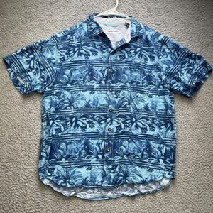 Tommy Bahama Shirt Mens Medium Blue Aloha Hawaiian Button Up Short Sleeve