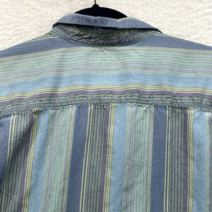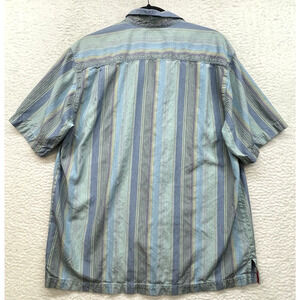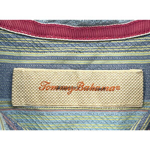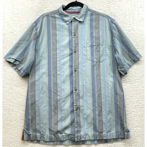 Tommy Bahama Shirt Mens Medium Blue Striped Silk Cotton Button Down Hawaiin