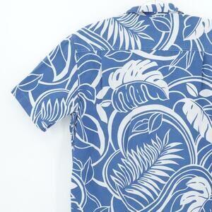 Tommy Bahama Shirt Mens Medium Blue White Hawaiian Floral Button Up Casual Cotton