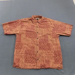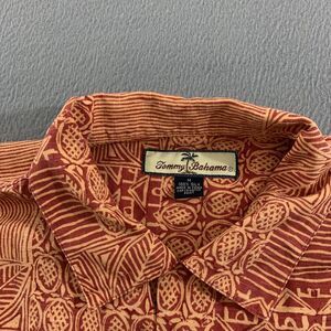 Tommy Bahama Shirt Mens Medium Red Brown Silk Hawaiian Button Up Camp Casual