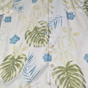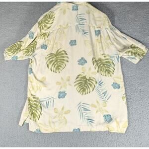 Tommy Bahama Shirt Mens Medium Tan Button Up Silk Hawaiian Floral Short Sleeve