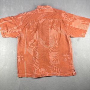 Tommy Bahama Shirt Mens Size Large Orange Button UP Hawaiian Silk Floral
