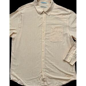 Tommy Bahama Shirt Mens Size XL Peach Relax 100% Linen Long Sleeve Button Up
