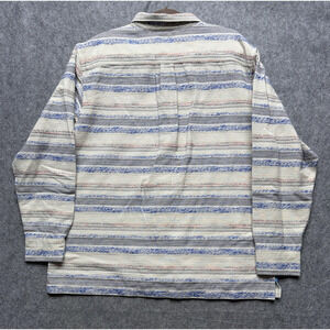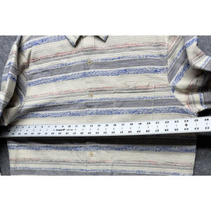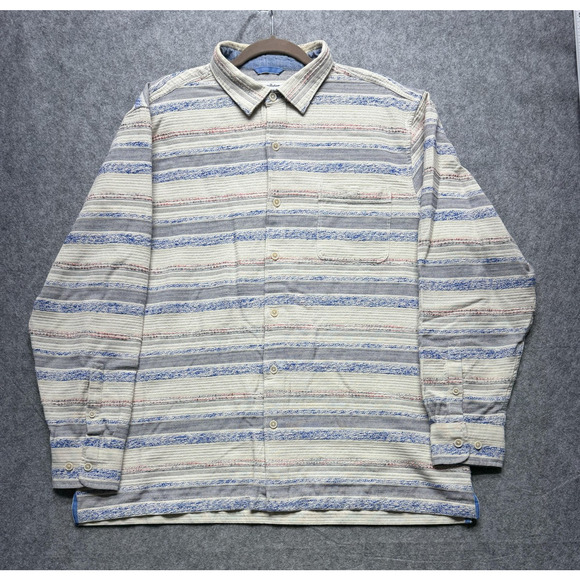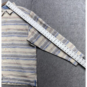 Tommy Bahama Shirt Mens XL Beige Blue Woven Stripe Button Front Casual