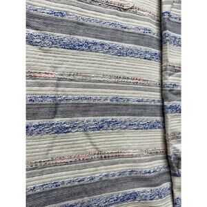 Color: Beige base with blue, gray, and red horizontal textured stripes.