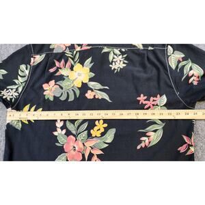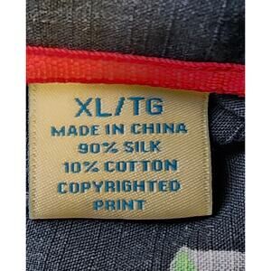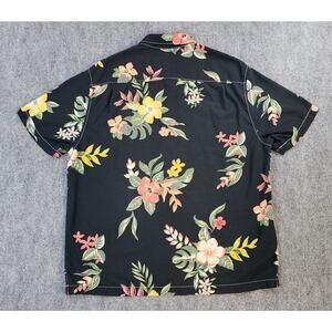 Tommy Bahama Shirt Mens XL Black Hawaiian SIlk Blend Tropical Loop Collar