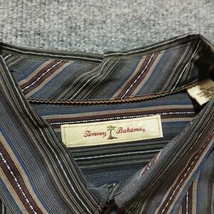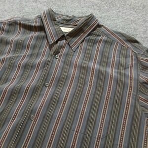 Tommy Bahama Shirt Mens XL Brown Blue Striped Silk Button Up Long Sleeve Casual