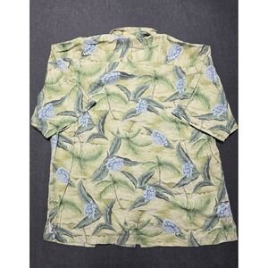 Tommy Bahama Shirt Mens XL Button Up Floral Blue Silk Camp Hawaiian Casual AOP