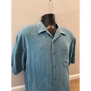 Tommy Bahama Shirt Mens XL Cream 100% Silk Short Sleeve Button Up Camp Casual