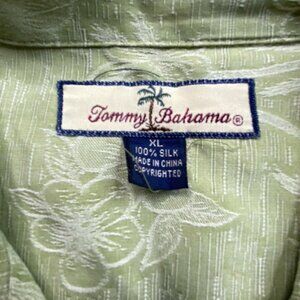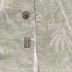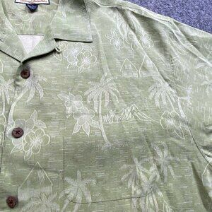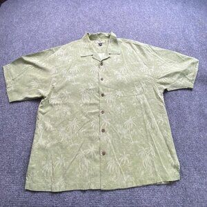Tommy Bahama Shirt Mens XL Hawaiian Silk Green Button Palm Trees Tropical Beach
