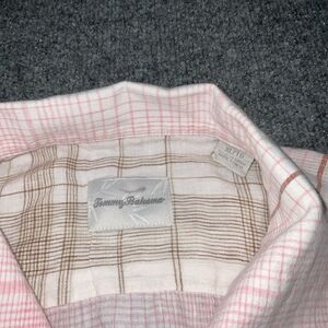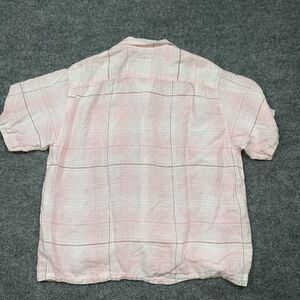 Tommy Bahama Shirt Mens XL Pink Check Linen Button Up Causal Outdoors