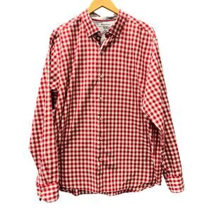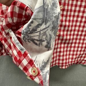 Tommy Bahama Shirt Mens XL Red White Check Gingham Contrast Cuffs Button Up Coastal 100% Cotton Long Sleeve