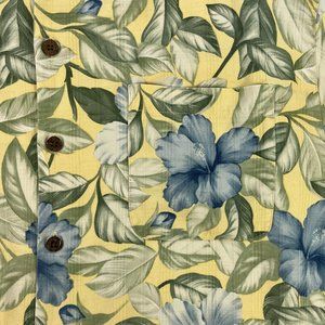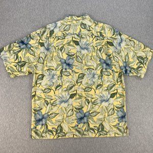 Tommy Bahama Shirt Mens XL Short Sleeve 100% Silk Floral All Over Print Hibiscus