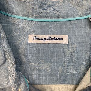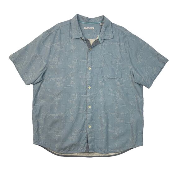 Tommy Bahama Shirt Mens XXL Breeze Blue Palms in Paradise Silk Hawaiian Jacquard
