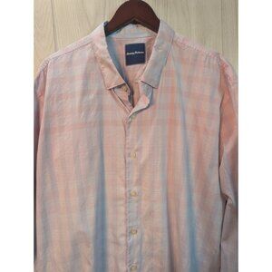 Tommy Bahama Shirt Mens XXL Pink Blue Ombre Button Down Silk Blend Flaw