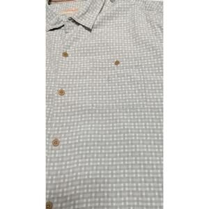 Tommy Bahama Shirt Mens XXL Tall Tan Silk Cotton Button Up Plaid Short Sleeve