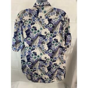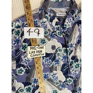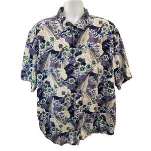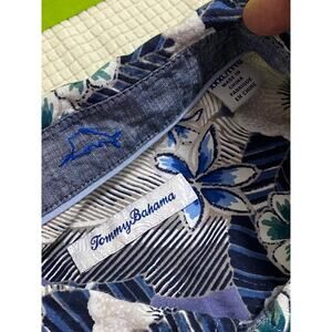 Tommy Bahama Shirt Mens XXXL 3XL Blue Floral Button Down Cotton Silk Blend