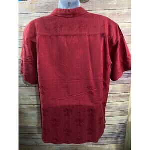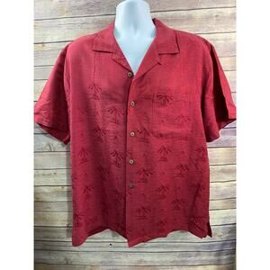 Tommy Bahama Shirt Size L Silk Button-Up Red Tropical Pattern Coastal Style