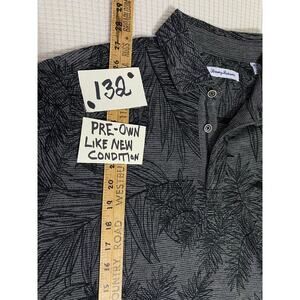 Tommy Bahama Shirt Size M Leaf Print Short Sleeve Button-Up Dark Base Lightweight Resort Style SIZE MEDIUM — SEE PHOTOS FOR MEASUREMENTS — MODERN VS VINTAGE RUN DIFFERENT IN SIZE — If the shipping cost seems high send me a message and I can adjust Tommy Bahama short sleeve button-up shirt with light palm frond print over a dark base. Lightweight fabric with relaxed fit and coastal vibe. Tagged Medium, flat lay measurements shown. Pre-owned, excellent condition with no major flaws. Great for resortwear drops, vacation bundles, or upscale casual resale. #TommyBahamaLeafDrop #ResortwearMensStyle #UsedButClean #ResaleReady #FloridaResale #SizeMediumStyle