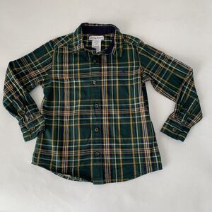 Tommy Bahama Shirt Tartan Plaid Button Down Boys Small 5/6 Green Yellow Holiday