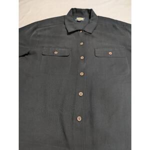 Tommy Bahama Shirt Women Small Black Silk Tropical Top Button Short Sleeve Beach