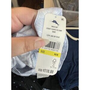 Tommy Bahama Shirt Womens Medium Blue Legacy Leaves Linen Camp Button Up