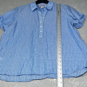 Up for sale: Tommy Bahama Shirt Womens Small Blue Stripe Sandswept Short Sleeve Cotton Blend