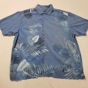 Tommy Bahama Shirt XL Aloha Hawaiian Silk Fronds Palm Leaves Floral Coconut