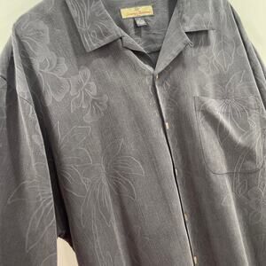 Tommy Bahama Shirt XL Charcoal Gray Silk Floral Camp Button Down Short Sleeve
