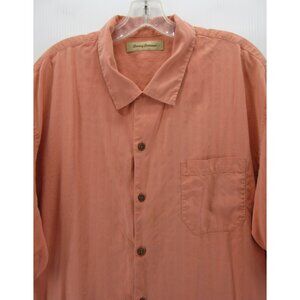 Tommy Bahama Shirt XLX Big Pink Silk Hawaiian Loop Collar Camp Resort*