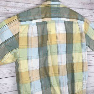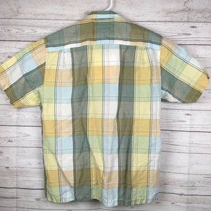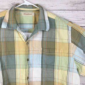 Tommy Bahama Shirt sz Large Short Sleeve Linen Silk Blend Button Up Plaid Yellow