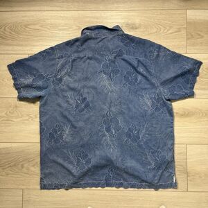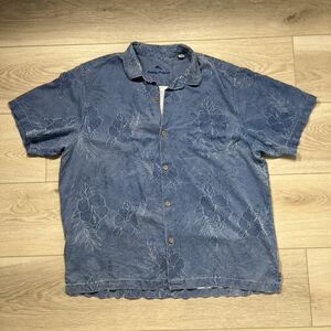 Tommy Bahama Shirt Mens Sz XXL Shark Blue Silk Floral Print Jacquard Hawaiian