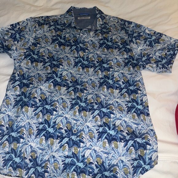 Tommy Bahama Short Sleeve Buccaneer Blue Floral Shirt Plantain Jungle Size M